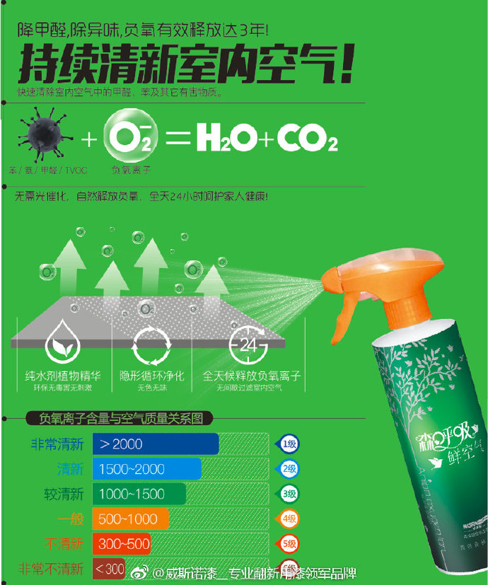 森呼吸負氧生態(tài)液專為室內(nèi)清新空氣而開發(fā)的專用產(chǎn)品,除甲醛、除異味、負氧有效釋放長達3年!持續(xù)清新室內(nèi)空氣!快速清除室內(nèi)空氣中甲醛、笨及其他有害物質(zhì)。