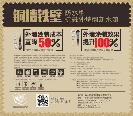 威斯諾翻新漆——銅墻鐵壁 威斯諾翻新漆銅墻鐵壁一款為您節(jié)省50%成本的外墻革命性涂料。