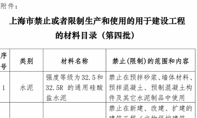 從上海市住房和城市建設(shè)管理委員會獲悉,4月23日經(jīng)上海市人民政府批準(zhǔn),上海市住建委公布 《上海市禁止或者限制生產(chǎn)和使 用的于建設(shè)工程材料目錄(第四批)》,201...